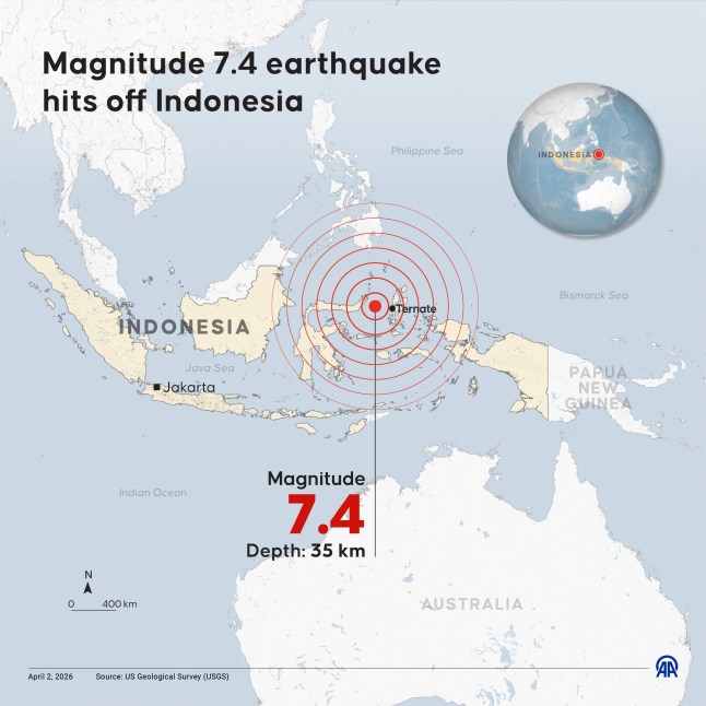Tsunami warning triggered after powerful 7.4-magnitude earthquake strikes IndonesiaDetails