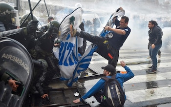 The streets outside Argentina’s parliament were turned into a “battlefield” as police clashed with protesters wielding petrol bombs over the president’s controversial reforms.