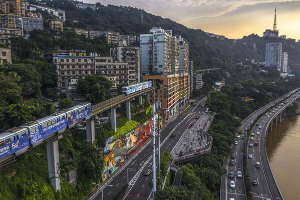 The monorail train passing through residential buildings is a hot spot in Chongqing. (Photo/cqnews.net)