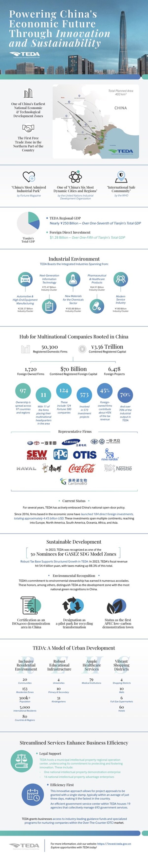 TIANJIN,China,Dec. 7,2024 -- TheTianjin Economic-Technological Development Area("TEDA"),established in 1984 upon the approval of China's State Council,is celebrating its 40th anniversary. This milestone highlights the transformation of a salt-alkali wasteland into the country's premier national-level economic development zone. It boasts one of themost favorable investment environment in China with the biggest economic aggregate and highest degree of integration with the world. TEDA is nurturing 10 industrial parks spanning across 403 square kilometers with 53,400 enterprises calling it home.