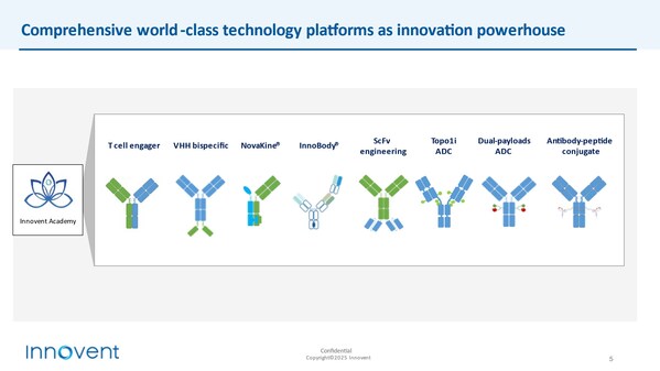 Innovent Academy,the company's innovation engine,has built a world-class technology platform,encompassing ScFv engineering,T cell engager (TCE),VHH bispecific antibodies,Topo1i ADC,dual payload ADC,and antibody peptide conjugates (APC). These platforms have consistently delivered innovative molecules,providing a driving force for the company's long-term development.