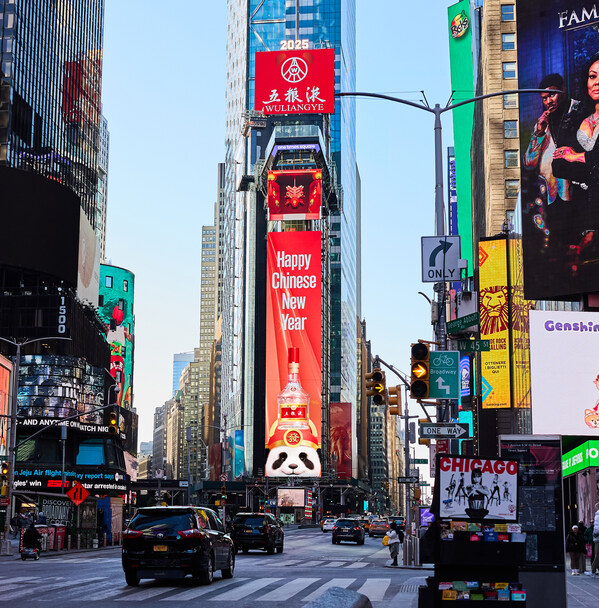BEIJING,Feb. 5,2025 -- China's leadingbaijiu maker Wuliangye sent its Spring Festival greetings to the world through a 3D advertisement released on January 27 at the Times Square,New York.