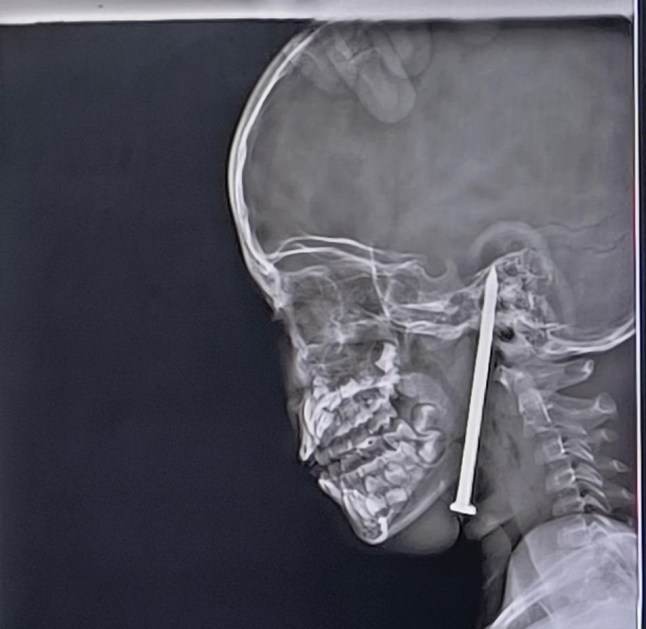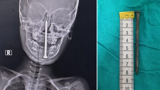 The nail had travelled through the neck and palate (Picture: SWNS)