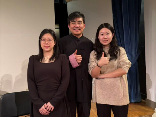 From left to right: Shitong Gao (Pianist), Xiaoran (Bamboo Flute Artist), and Zihan Gao